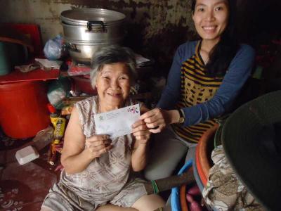 Ngày 16/4/2015 Thiên Hải Anh và Kieu Le đã đến thăm và gửi hai cụ số tiền CMTX tháng 4/2015 là 200.000đ của thành viên Michele_du và Gia đình. Cụ Phương có gửi lời cảm ơn và chúc sức khỏe đến mọi người.