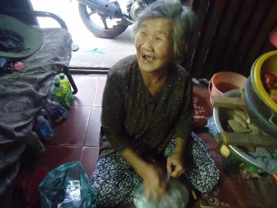 Rất may mắn là tới nhà lần này được gặp đầy đủ cả hai cụ, bà thì đang ngồi trước cửa đếm mấy đồng bạc lẻ vừa bán khoai lang lúc sáng và chuẩn bị đi ra chợ đầu mối để lấy khoai về bán cho ngày hôm sau. Được biết hai ông bà là hai vợ chồng chứ không phải hai anh em (lần trước thì được nghe thông tin hai cụ là anh em), bà tên Ngô Thoại Phương năm nay đã 73t còn ông thì 82t. Sau một lần bị tai nạn thì đôi chân của ông đau đi đứng rất khó khăn nên chỉ đi khập khiễng trong nhà. Còn bà thì 3g sáng hằng ngày đã dậy nấu khoai bưng ra đầu hẻm để bán. Mỗi ngày, bà chỉ bán 3kg khoai và tiền lời khoảng 20.000đ, với đồng tiền ít ỏi nên bà thường mua 2 hộp cơm chay với giá 10.000đ để hai ông bà ăn cả ngày. Căn nhà tối om vì bà bảo chỉ dám dùng đèn dầu chứ ít khi sử dụng điện vì sợ không có tiền trả. Tiền điện hằng tháng là 12.500đ và tiền nước là 12.190đ. Gặp hai chị em, ông bà nói chuyện rất vui vẻ nhưng khi kể về cuộc đời mình thì mắt bà như chực khóc. Hai ông bà có một người con gái nuôi đã ngoài 40t lấy chồng Đài Loan đến nay đã được mười năm nhưng cô lại không về thăm, cũng không gửi tiền chăm lo ông bà cụ lúc tuổi già. Bà còn có một người mẹ nuôi cũng đã hơn 90t nhưng bà cụ đã về Bến Tre ở. Cô bác hàng xóm thấy thương hoàn cảnh của ông bà nên thường cho ông bà mì gói, đường và một số đồ ăn khác. Bà cụ vì lớn tuổi, đau nhức người nên thường đi châm cứu và được phát thuốc miễn phí ở một phòng khám từ thiện (92 Cao Thắng, P.4, Q.3).