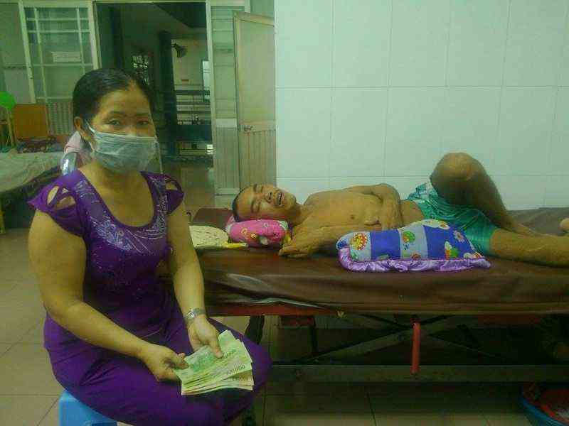 Anh Cường bắt đầu đổ bệnh chừng gần tháng nay và gia đình lâm vào túng quẫn khi mất đi ngưồn lao động chính cũng như chi phí điều trị cao vì không có BHYT.