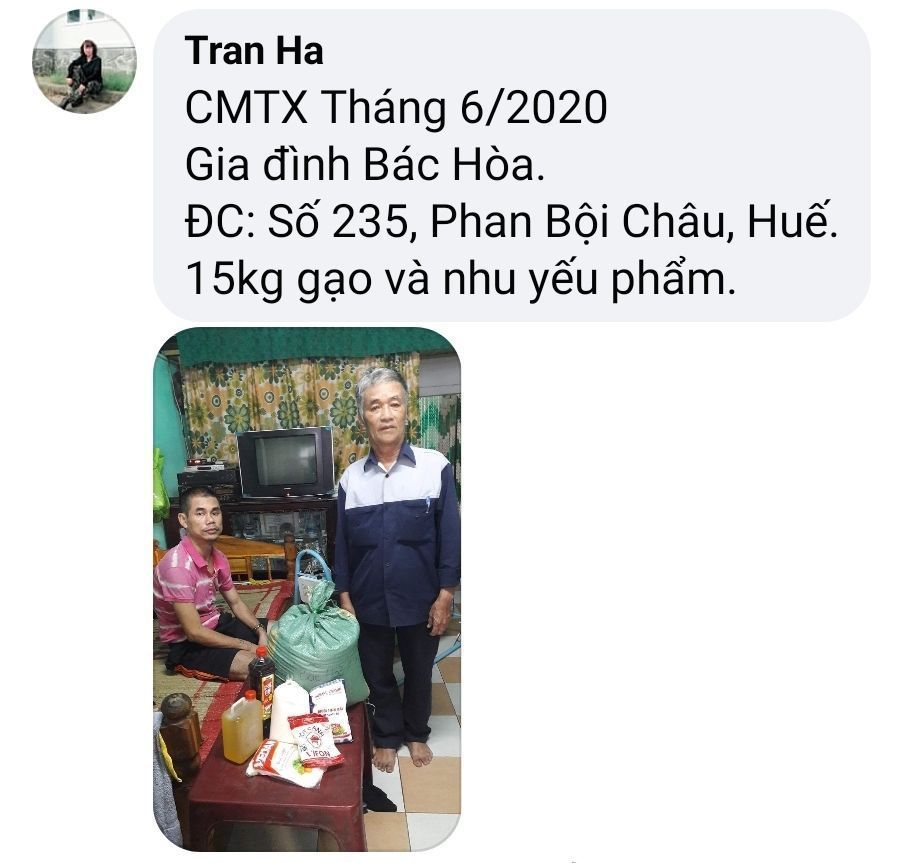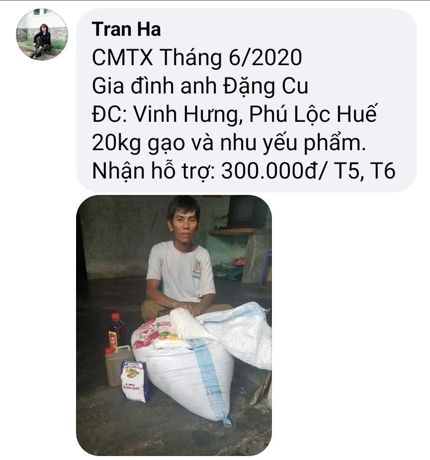 Nhóm NTCM _ Huế  đã nhận tiền mua bổ sung nhu yếu phẩm cho 10 gia đình Tháng 6.