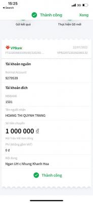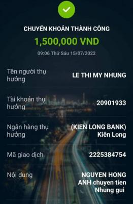 Bạn Huỳnh Ngọc Ngân có ủng hộ tiếp cho Nhung 500,000đ đã chuyển tài khoản thủ quỹ. Nhờ TĐP duyệt chuyển cho Nhung giúp ạ.