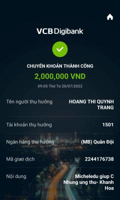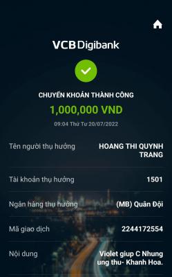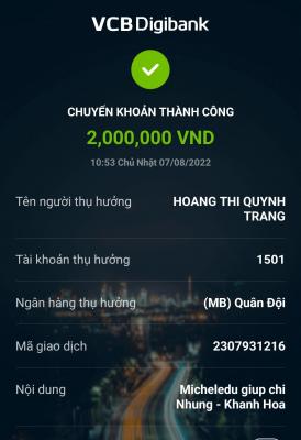 Lathuvang đã trung chuyển tk NTCM 2 triệu giúp c Nhung của Michele_du và GĐ.