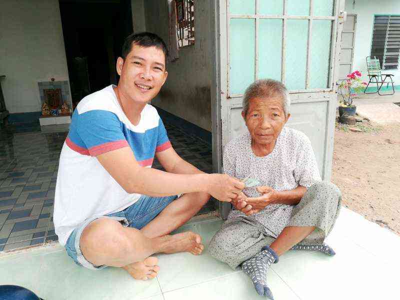Nhóm ĐG có gửi tặng 1 phần quà trị giá 300k gồm 100k TM và gạo, dầu ăn ... đến cụ Kim trong tháng 12/16.