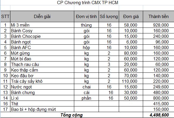 Tổng CP cho CT 4.500.000đ