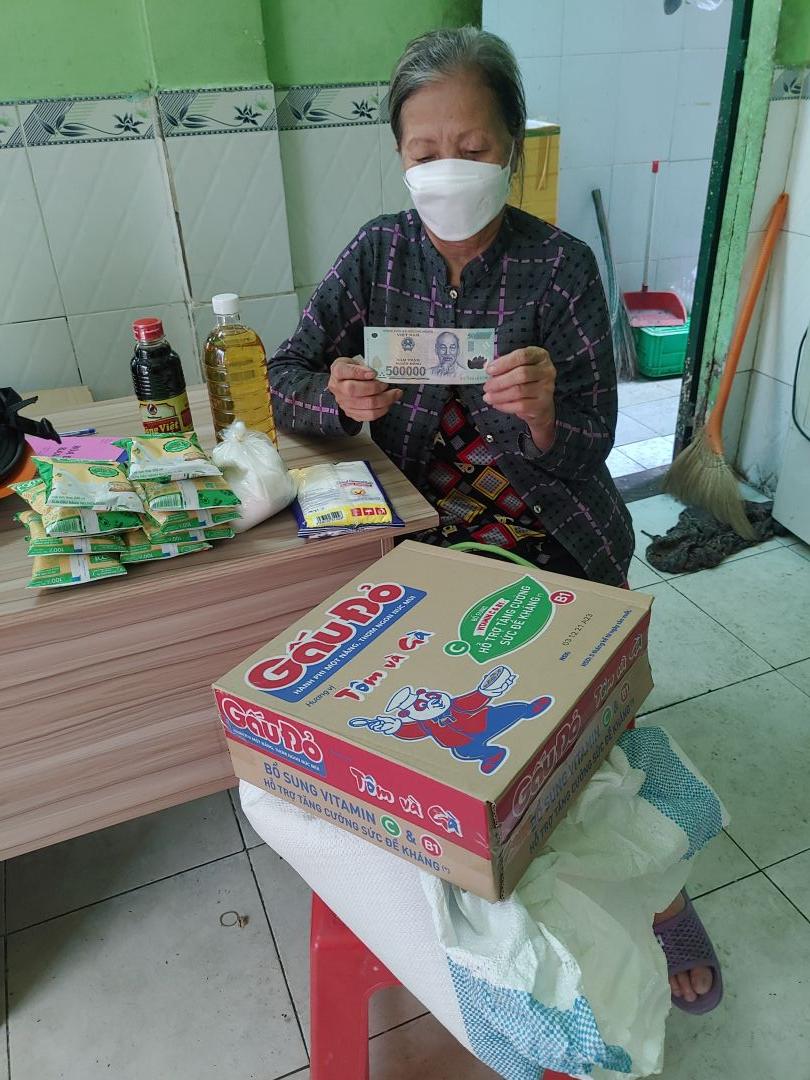 Letuantu xin cập nhật hình ảnh trao nhu yếu phẩm các tháng từ tháng 7/2021 đến tháng 2/2022 cho cô Điệp + tiền CMTX em bé Anh Thư (cháu cô Điệp) từ tháng 11/2021.