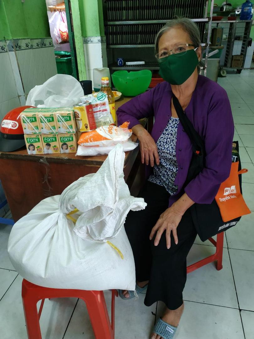 Trưa nay, cô Điệp có ghé quán cơm 2000d SG để nhận gạo & nhu yếu phẩm CMTX T8/2020, số lượng cụ thể là: