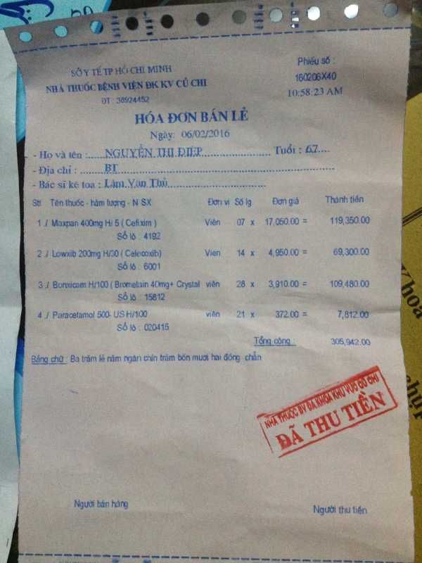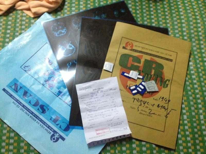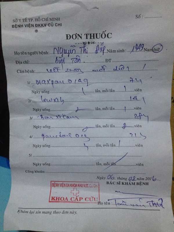 Tối nay vợ chồng mình có ghé thăm dì Điệp thì thấy dì đang nằm một chỗ vì mới bị té xe vào buổi trưa. Trên đường bé Hà chở dì bằng xe máy (50cc) đi thăm mộ ba, một xe tải cùng chiều vượt mặt xe của dì khiến hai bà cháu bị hoảng nên xe đâm vào con lươn. Bé Hà bị xây xát nhẹ ở môi và đầu gối, còn dì Điệp bị nặng hơn, được người dân đưa vào bệnh viện Củ Chi và bác sĩ nói không có tổn thương bên trong, nhưng phần lớn môi bị dập. Hiện dì nói chuyện và ăn uống khó khăn, chỉ uống được sữa. Toàn bộ thuốc thang kèm chụp ảnh chẩn đoán tốn khoảng 1.200.000 đ.
