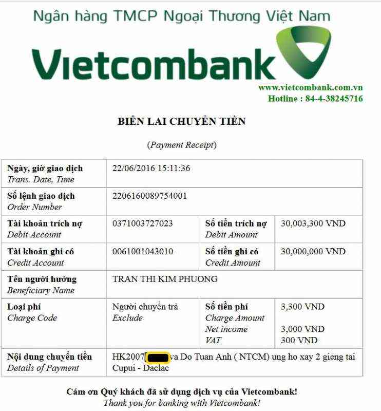@Thocon : Em chuyển 30,000,000đ của vợ chồng Hk2007 và anh Tuấn Anh tới Phung_Cư pui để làm  02 giếng khoan .