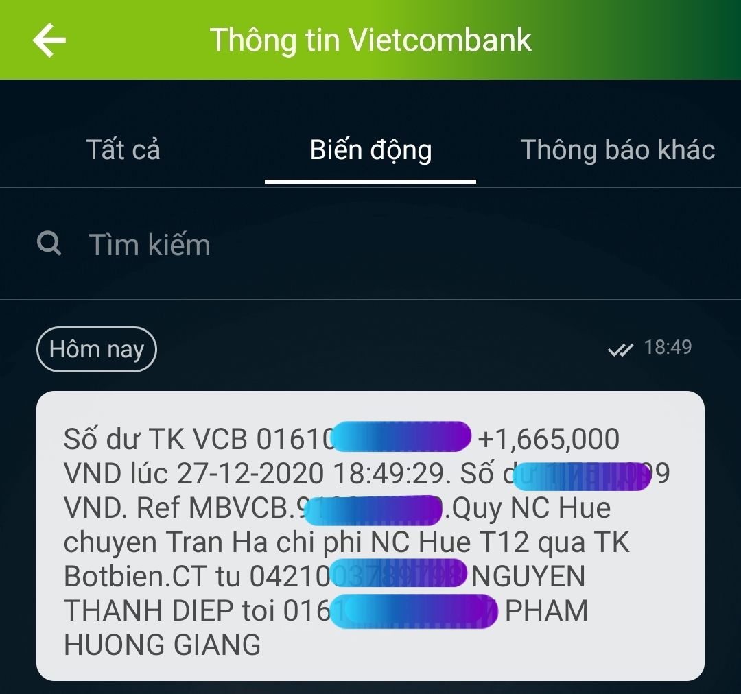 Em vừa nhận tiền hoạt động nồi cháo T11/2020.