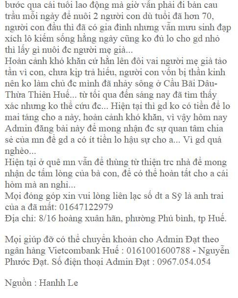 Qua trao đổi với BQT, chúng ta đã đi viếng tang là 500k từ nhóm NTCM và 200k của thành viên Phương Hồ.