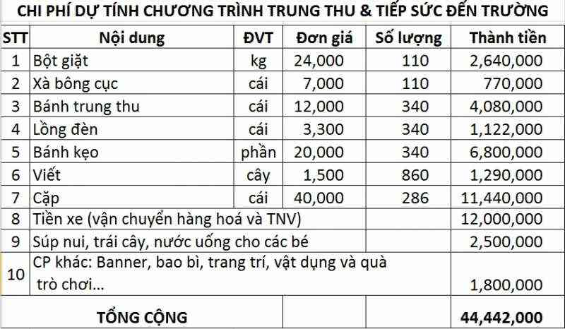 Loannguyen cập nhật CP dự tính cho CT TRung Thu sau khi nhận ủng hộ hiện vật:
