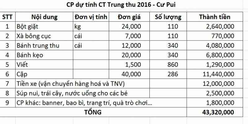 Như vậy tính đến thời điểm này, số tiền ủng hộ CT TRung Thu đã đủ so với CP dự tính.