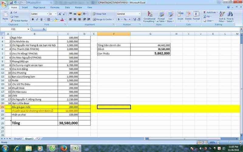 1. Quỹ diễn đàn chuyển ra cho chương trình: 20,000,000đ