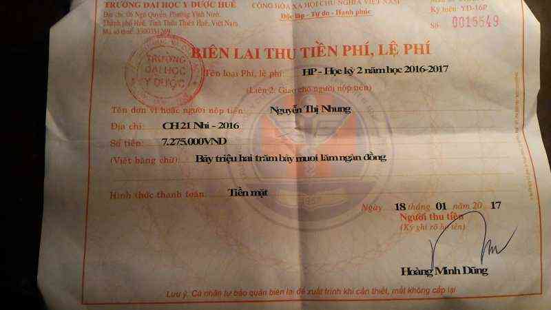 Con đã nhận được tiền hỗ trợ học phí và đã nộp được học phí học kì I. Dưới đây là ảnh kèm theo biên lai học phí của con. Tiền học kì II sang tuần con sẽ đi nộp tiếp ạ, giờ con thông báo để mọi người được biết thông tin ạ. Con cảm ơn vì mọi người đã luôn đồng hành cùng hành trình của con.