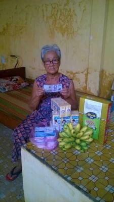 Chị Trương Ngọc Dung đã gửi quà CMKTX biếu tặng chú Ban bồi dưỡng sức khỏe.  Gồm: sữa đậu nành, sữa chua, bánh, chuối.