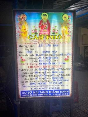Phụng báo tin muộn, tin buồn - là chú Ban đã chết vào ngày 3/9/22 tại miếu Bà Khâm Sai, đường Nguyễn Bảo, TP Vũng Tàu. Chú đi bán vé số, bị người ta đụng xe vào chú rồi họ bỏ đi. Lần này chú ko qua khỏi, nên đã vĩnh viễn ra đi sau tai nạn vài ngày. Nhóm từ thiện Liên Hoa ở Bà Rịa và mọi người đã chung tay lo đám tang cho chú Ban. Một cuộc đời đã khép lại trong đau thương.