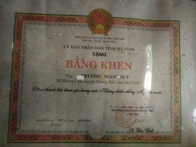 Chồng bà cũng từng là bộ đội chống mỹ, ( đã mất năm 2012)bà là thanh niên xung phong nhưng hiện không có chế độ gì của nhà nước.