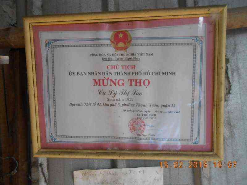 Chiều thứ 7, Loannguyen và các bạn letuantu, vandang77 và Kiều, đến thăm Cụ Sao và trao tiền CMTX T12 cho Cụ. Cụ vẫn như vậy, chị Tám vẫn nấu cơm và mang cho cụ ăn hàng ngày. Cụ nói muốn về quê nhưng không nhớ rõ quê ở đâu nữa :(.