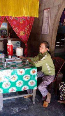 Dì Tâm- em cô Đào, vẫn đi làm thuê, vừa rồi cây thanh long trong vườn ra quả nhiều, dì đem bán cũng được 500.000 đ.
