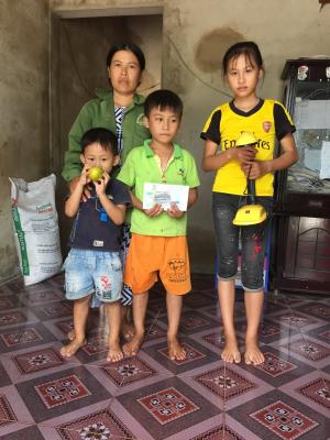 Hôm qua ngày 29/7 Hoaiti có ghé thăm và trao số tiền 500.000 đ cùng một số nhu yếu phẩm đến với hoàn cảnh mẹ con chị Hường rối ah. Hoaiti cũng trao luôn 2 bộ sách giáo khoa, 2 cái cặp và bút, vở theo chương trình Nâng bước em đến trường mà nhóm Hà Tĩnh đang thực hiện ah. Mẹ con chị rất vui và cảm động trước tấm lòng của cả nhà ah. Chị Hường bảo “ có thể yên tâm phần nào khi các con sắp bước vào năm học mới rồi ah”. Ngồi nói chuyện với mẹ con chị thì em được biết là chị đang nộp hồ sơ vào công ty may cách nhà 20km ah. Hi vọng chị sẽ được nhận vào làm để mẹ con chị có thêm nguồn thu nhập ổn định ah!