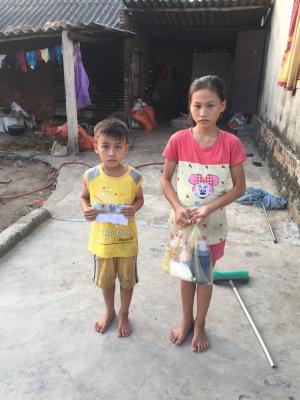 Chiều hôm qua ngày 29/6 Hoaiti có ghé thăm và trao CMTX tháng 6 số tiền là 500.000d và một số nhu yếu phẩm cho mẹ con chị Hường rồi ah. Vì chị Hường k có ơ nhà nên Hoaiti đã trao số tiền đó cho con gái đầu của Chị là Cháu : Võ Huyền Trang ah. Được biết là cháu năm nay lên Lớp 8 và học lực cũng khá ah.