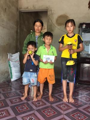 Hôm qua ngày 29/7 Hoaiti có ghé thăm và trao số tiền 500.000 đ cùng một số nhu yếu phẩm đến với hoàn cảnh mẹ con chị Hường rối ah. Hoaiti cũng trao luôn 2 bộ sách giáo khoa, 2 cái cặp và bút, vở theo chương trình Nâng bước em đến trường mà nhóm Hà Tĩnh đang thực hiện ah. Mẹ con chị rất vui và cảm động trước tấm lòng của cả nhà ah. Chị Hường bảo “ có thể yên tâm phần nào khi các con sắp bước vào năm học mới rồi ah”. Ngồi nói chuyện với mẹ con chị thì em được biết là chị đang nộp hồ sơ vào công ty may cách nhà 20km ah. Hi vọng chị sẽ được nhận vào làm để mẹ con chị có thêm nguồn thu nhập ổn định ah!