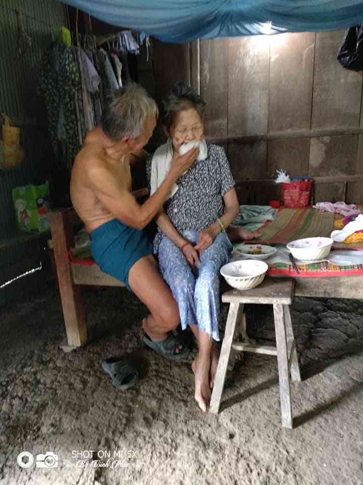 Đến với hoàn cảnh cụ Du là lúc ông đang cho bà ăn, bà không tự ngồi dậy được ông phải đỡ bà. Ông cẩn thận gỡ từng miếng xương dưới con mắt còm cèm của cái tuổi 70, đút bà ăn từng muỗng một. Bà không tự ngồi dậy được nhưng mắt bà sáng hơn ông, ông thì luôn nhắc bà nhai cho cẩn thận thấy xương thì nói tui bỏ ra ... Người thì lừa xương, người thì chỉ đường ông cứ thế từ từ đút bà ăn từng muỗng và không quên lau miệng cho bà. Cho bà ăn xong ông lại cho anh ăn, rồi sau cùng ông mới ăn.