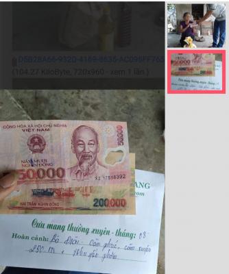 VKS đã nhận 1200.000 CMTX hoàn cảnh bà Đoài từ tháng 05 đến tháng 07/2021