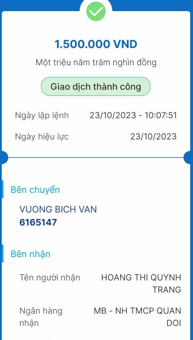 @trangvitgioi đã chuyển tiền CMTX của @maisauserasao tới chị Lương vào ngày 5/3/2024 rồi các bạn nhé.