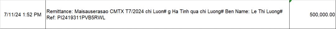 Vịt đã chuyển cmtx 500.000đ tháng 7 từ chị Maisauserasao đến chị Lương rồi anh Banbe6x nhé.