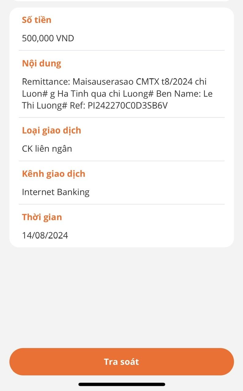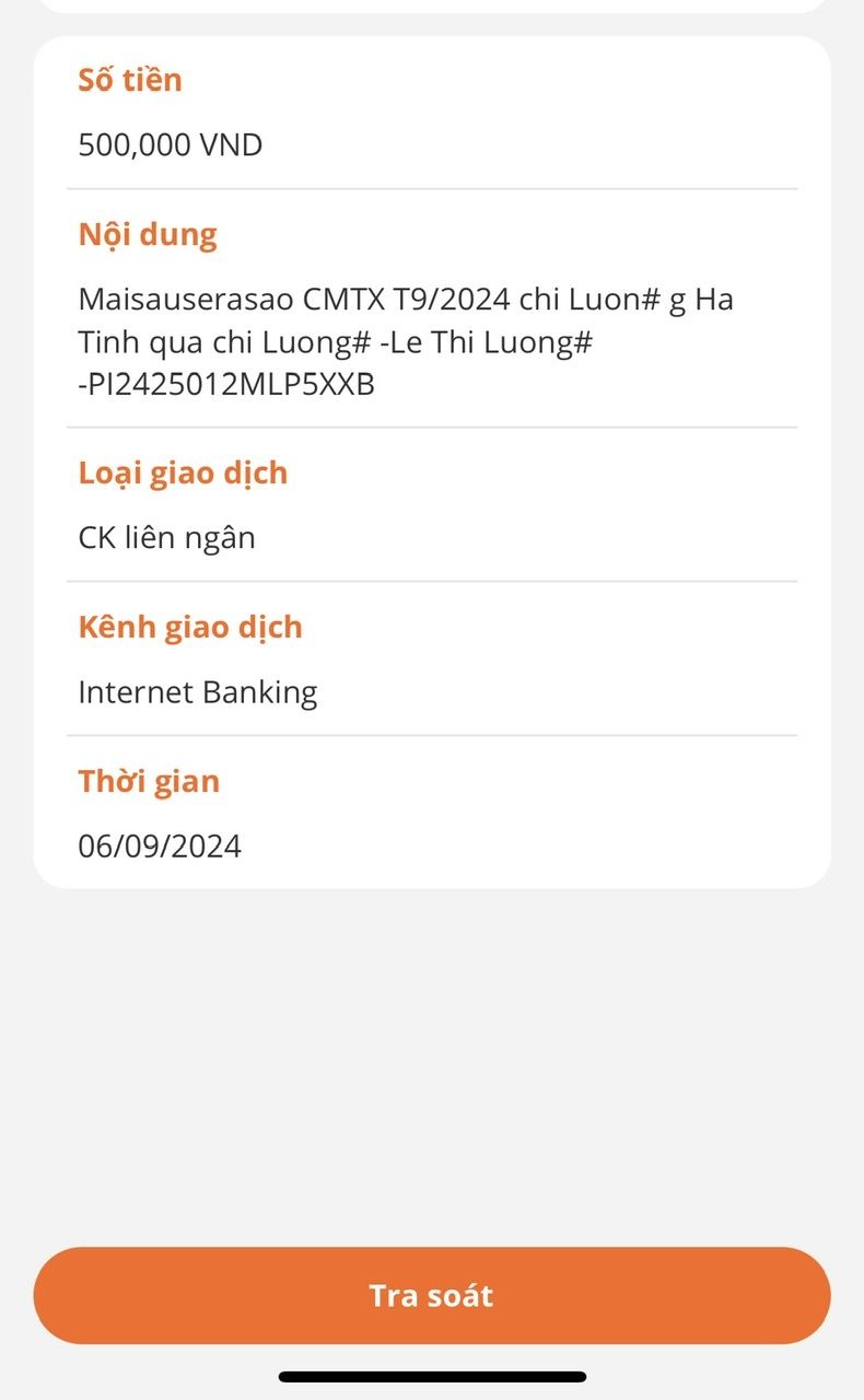 Vịt đã chuyển cmtx T8 & 9 2024 của Maisauserasao đến chị Lương, nhờ các bạn Hà Tĩnh thông tin thêm hoàn cảnh.
