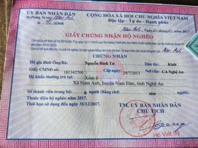 - [27/10/2017]:ÔNG NGUYỄN ĐÌNH TƯ (SN 1937) - bị teo não, sức khỏe yếu, đi lại khó khăn Địa chỉ: xóm 8, xã Nam Anh,huyện Nam Đàn, Nghệ An Vợ: Nguyễn Thị Chắt (1944) Con: Nguyễn Thị Thuận (1974), Nguyễn Thị Hòa (1977), đều bị xương khớp, cần người chăm sóc[Thành Mẫn]