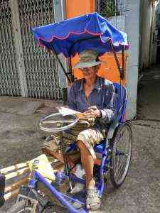Anh ấy nói : \" có được xe lắc tôi mừng lắm,  được ngủ trên xe lắc mà không sợ mưa rồi nước ngập.. \"