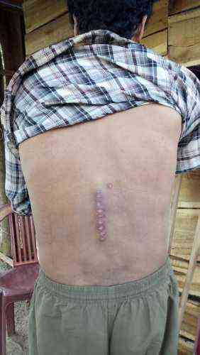 Vết mổ đốt sống lưng của anh Trường