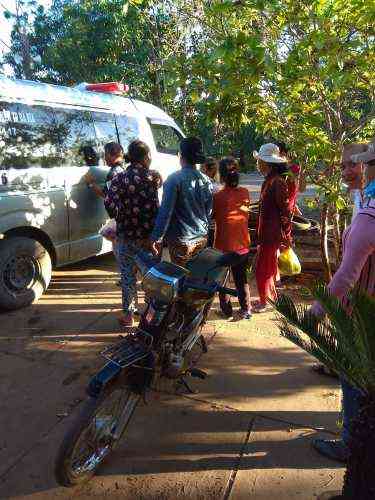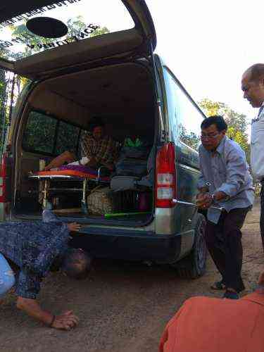 Xe chuyển viện từ thiện của chú Đức Phạm bị bể bánh khi đi trên con đường toàn đá lởm chởm để vào nhà anh Trường.