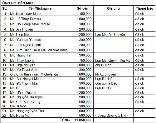Michele_du và Gia đình ủng hộ chương trình  1,000,000đ  các bạn nhé.