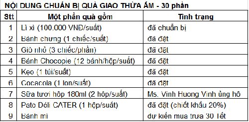 Chi phí mỗi phần quà dự kiến: 200.000 đ