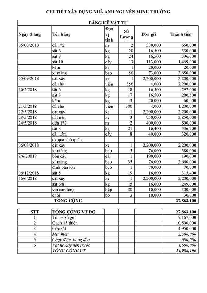 - Tiền công thợ xây nhà còn phải thanh toán: 7.600k.