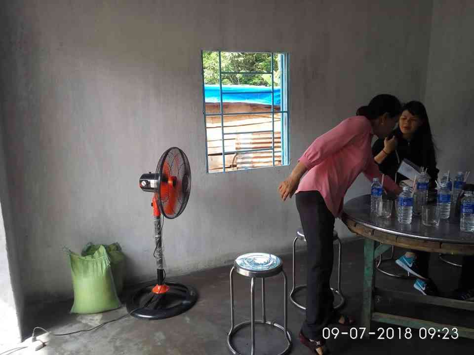 Phòng khách : có cái quạt máy mới do nhóm Phật tử Vũng Tàu tặng gia đình anh Trường