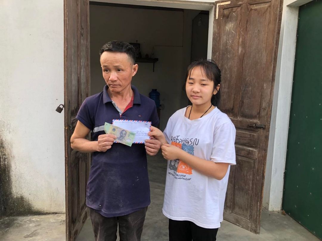 Con gái: HỒ THỊ HẰNG (SN 2005) mố côi mẹ, bố bị mù, được gửi vào làng SOS