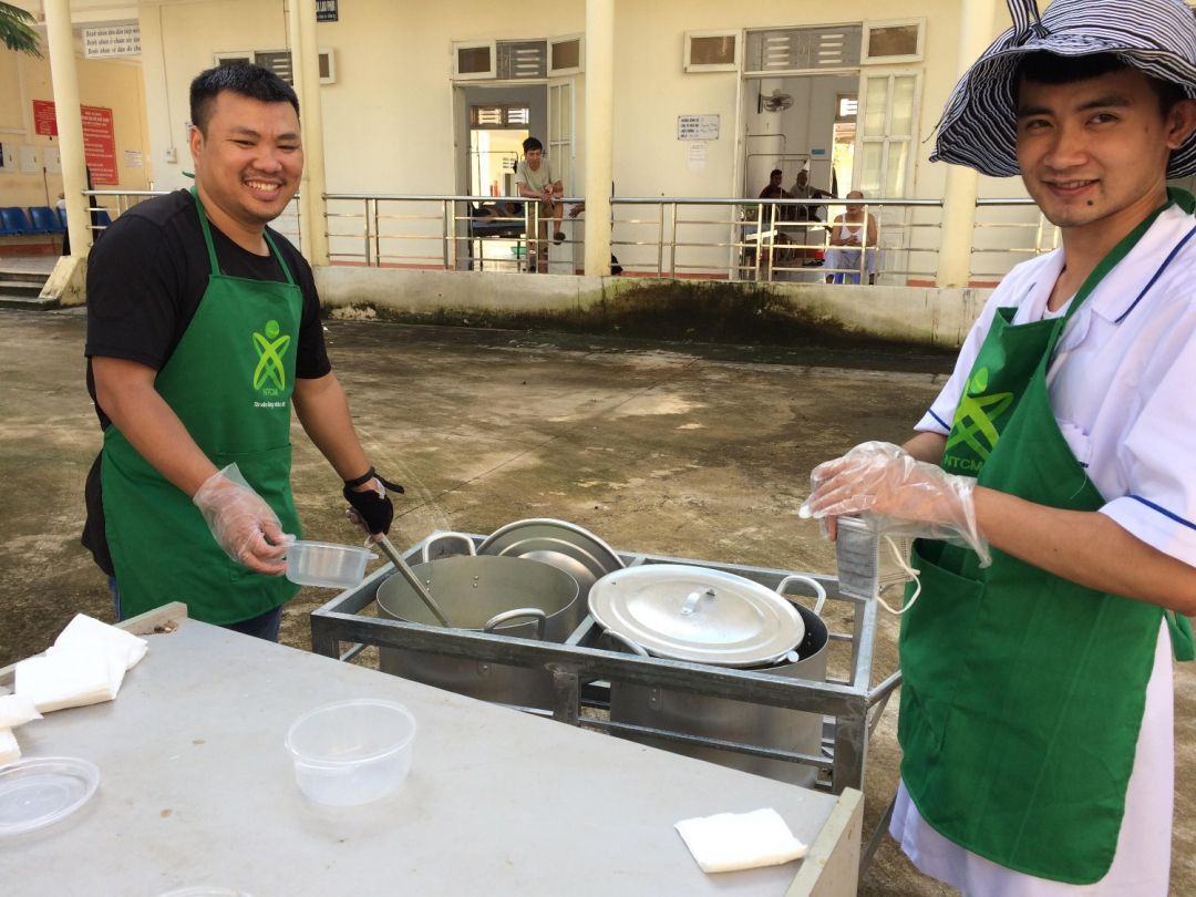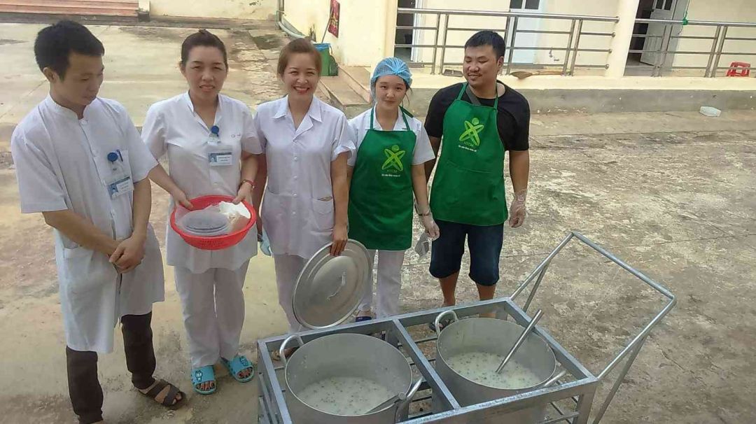 Mặc dù trời mưa to, nhưng với tinh thần thanh niên, các bạn ĐVTN đã ko ngại khó khăn tổ chức nấu cháo và phát cháo miễn phí cho bệnh nhân đang nằm và điều trị tại bệnh viện với 155xuất cháo miễn phi.