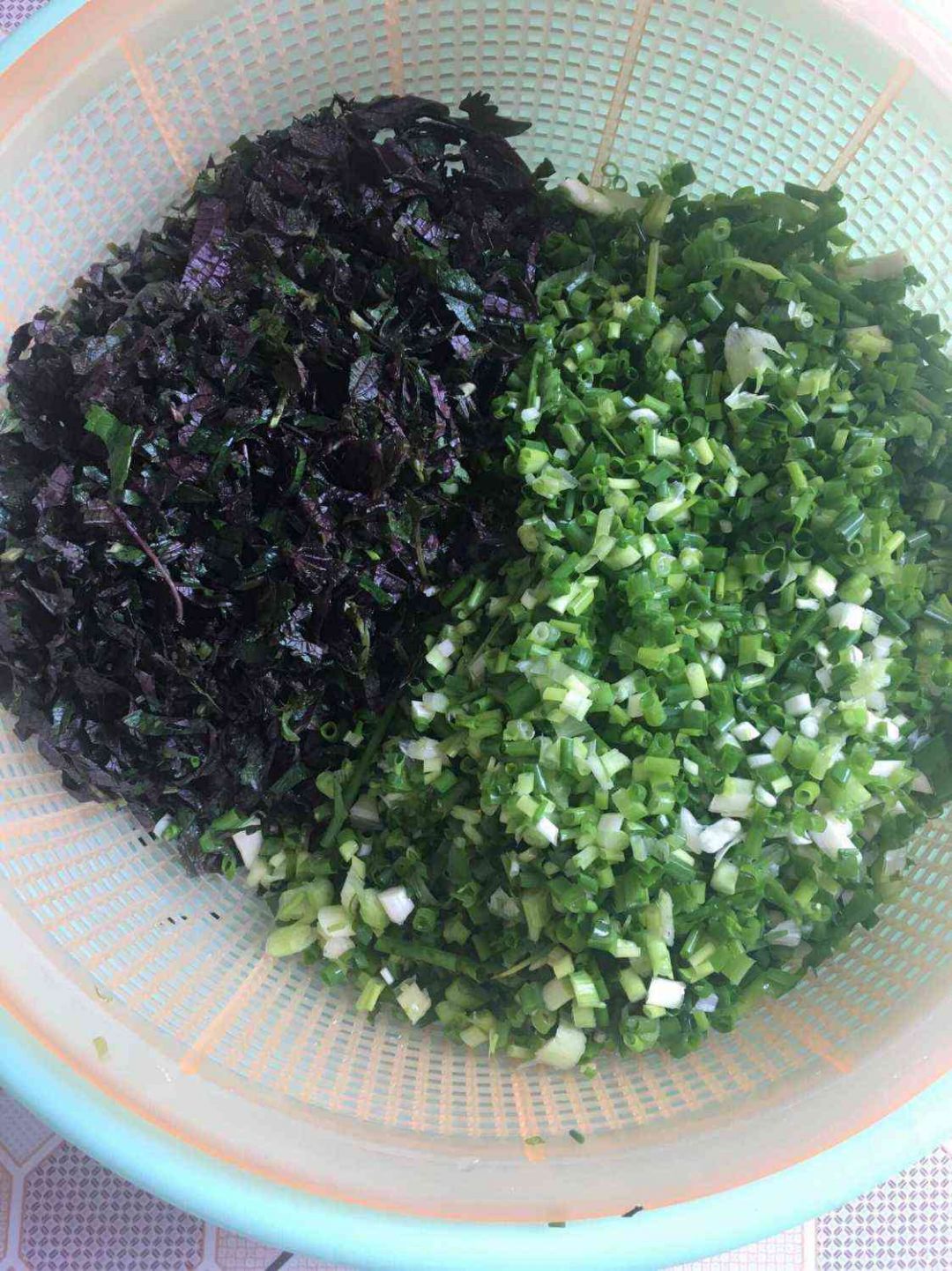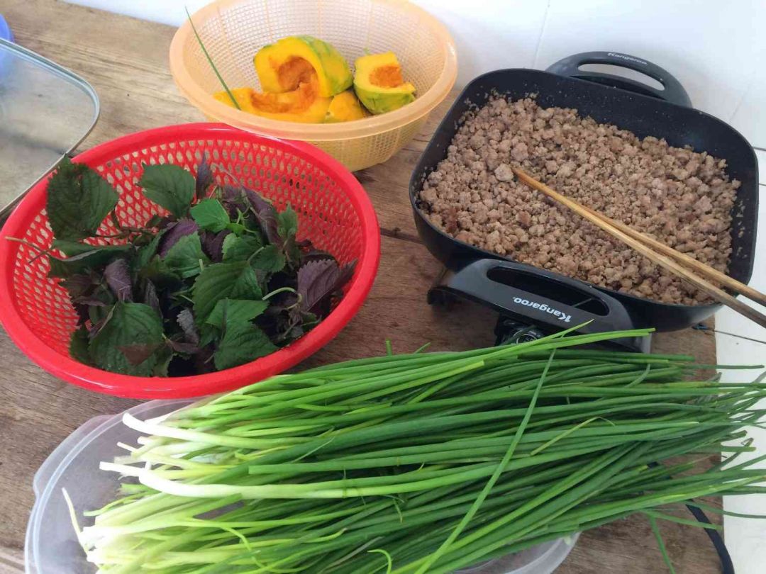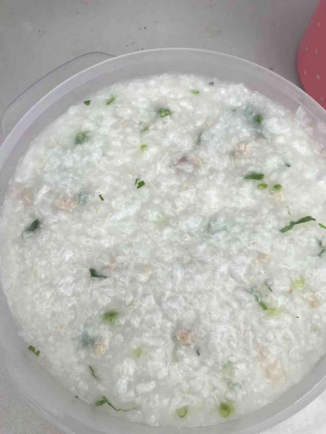 Hôm nay Nồi cháo có hành và tía tô nhìn ngon hẳn. Thịt vẫn xào lên phải không các bạn?