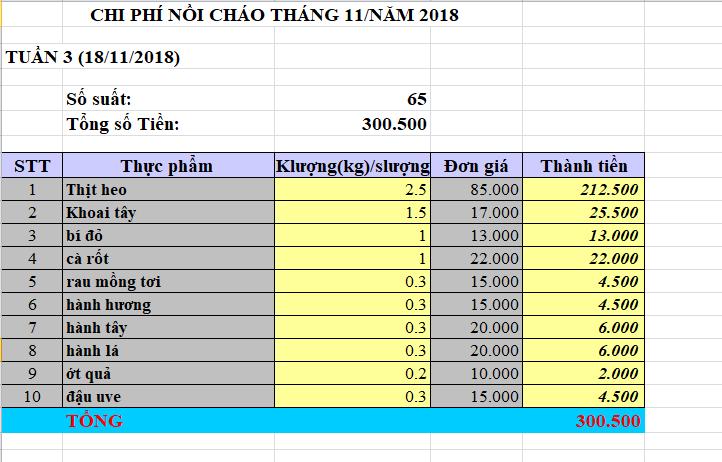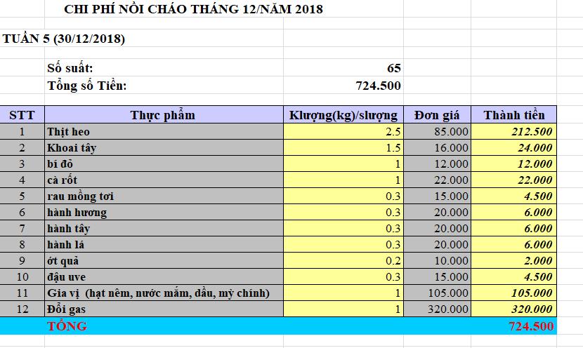 Dragonfly cập nhật chi phí đi chợ nồi cháo Quảng Trị Tháng 8,9, và tháng 10 năm 2018