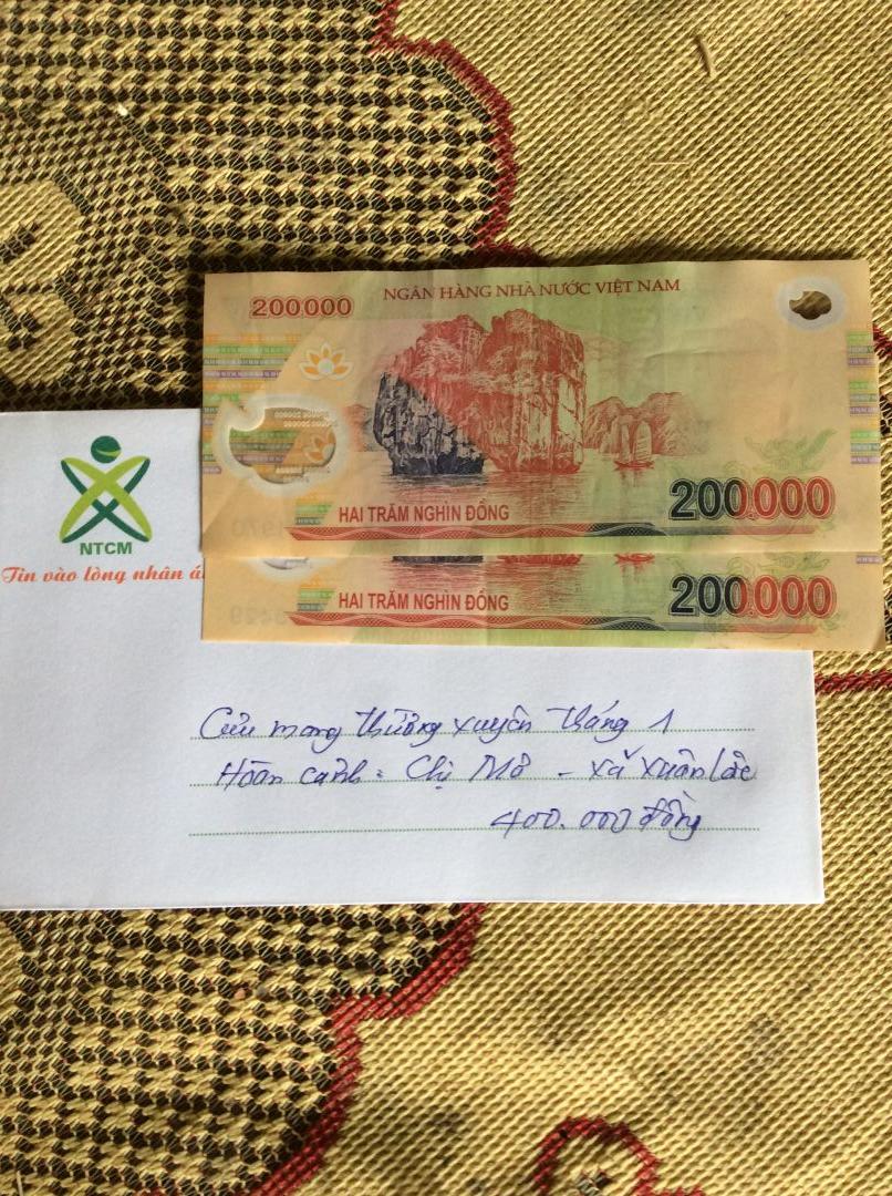 Ngày rằm tháng Chạp, tranh thủ thời gian những ngày gần Tết, vợ chồng LNLB đã đến thăm và trao CMTX tháng 1/2024 đến gia đình chị Mơ số tiền 400.000₫ khoản tiền chuyển từ gia đình chị Vĩnh của gia đình @michele_du