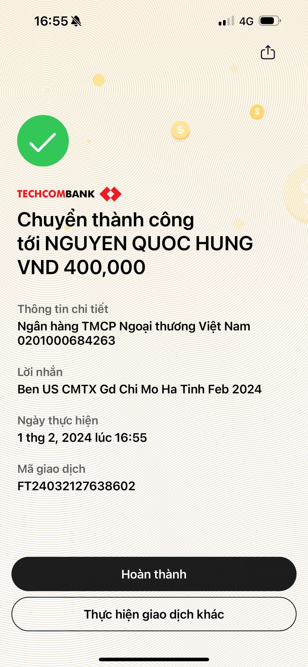 Ben đã chuyển CMTX tháng 3.2024 nhé ạ.