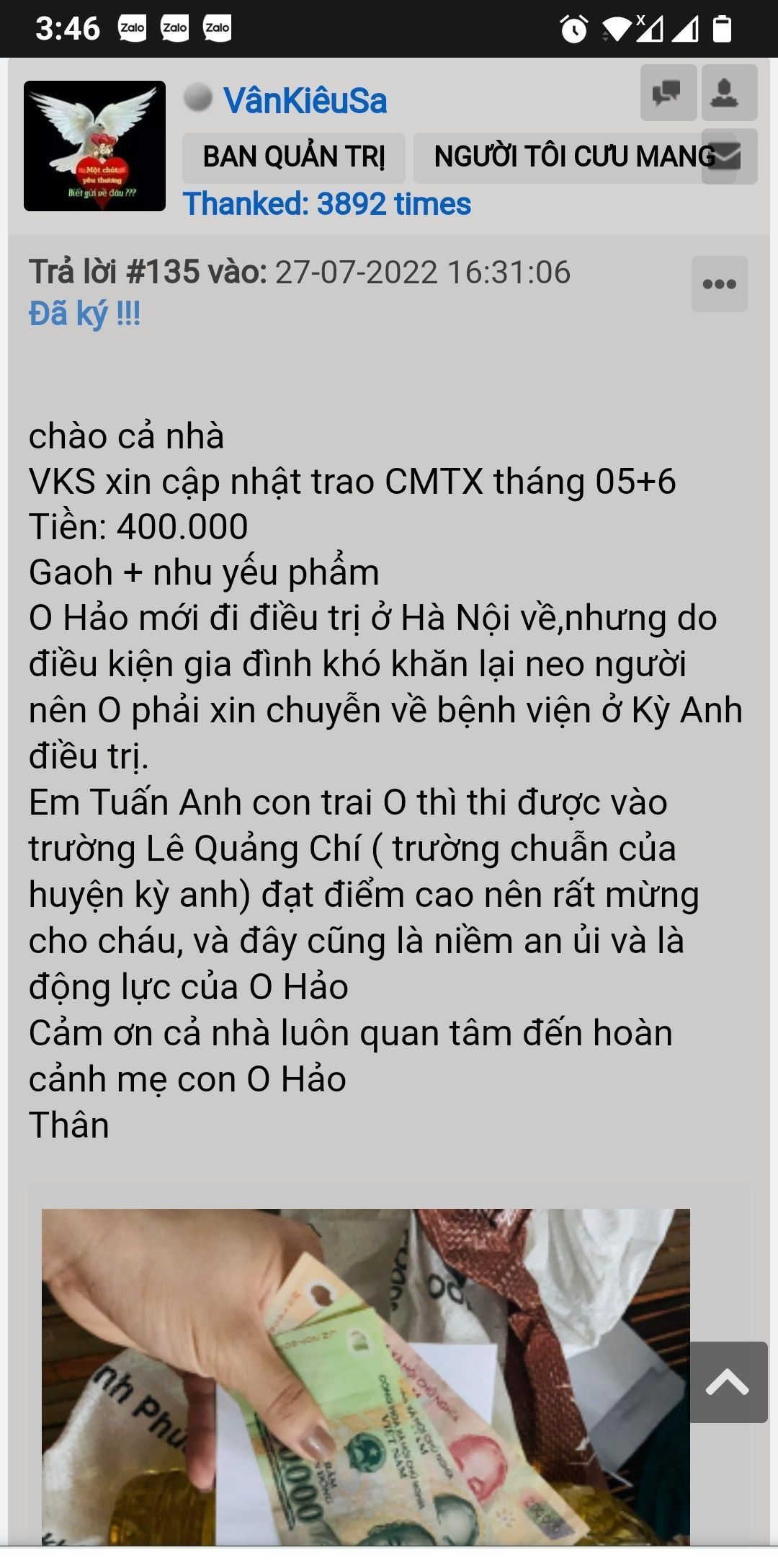 - [16/02/2020]:TV locnguyen nhận hỗ trợ cho hoàn cảnh O Hảo 300k/ tháng từ tháng 2 đến tháng 4/2020[locnguyen]