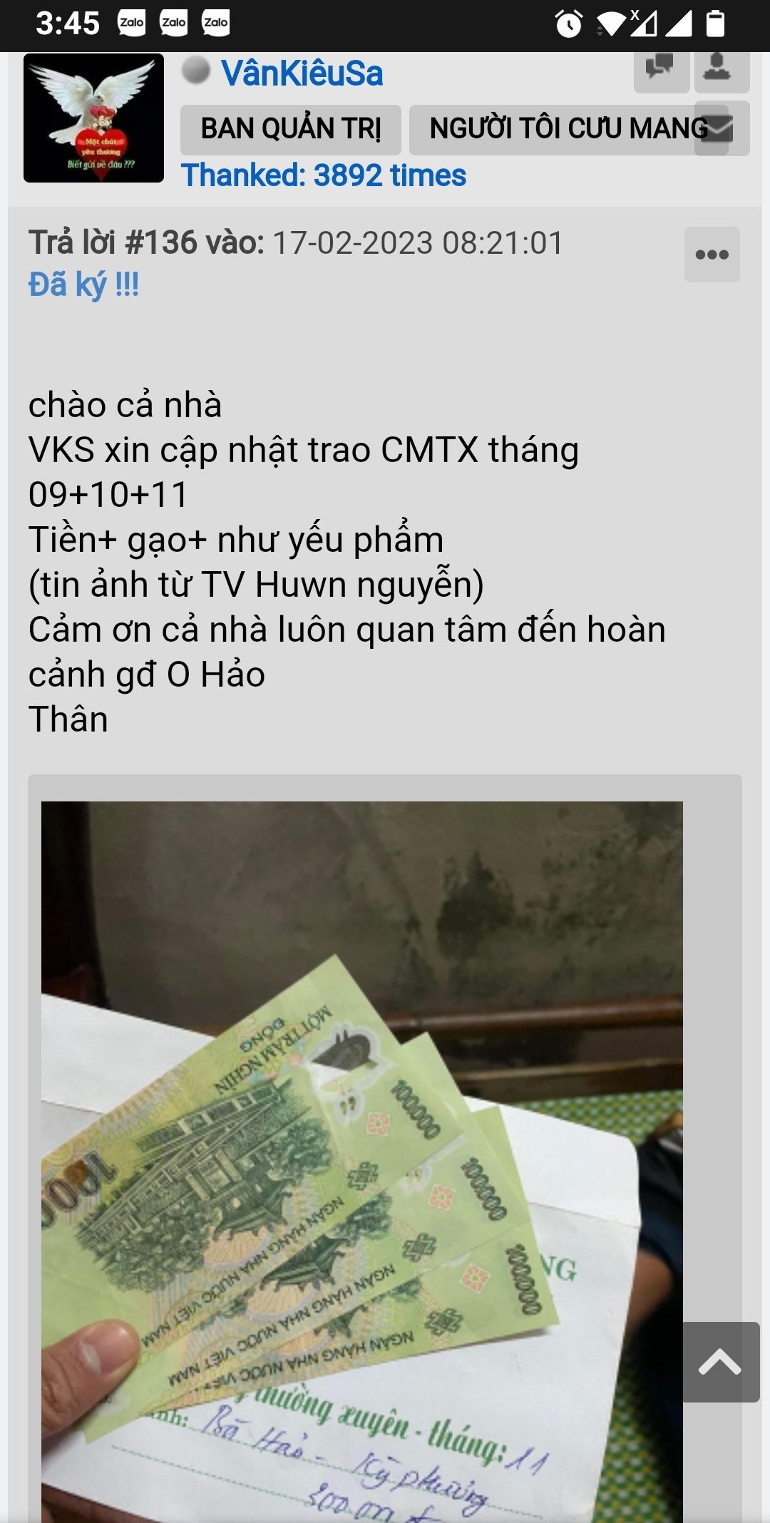 - [01/05/2019]:Trao CMTX t4/2019 gồm 300,000đ[VânKiêuSa]