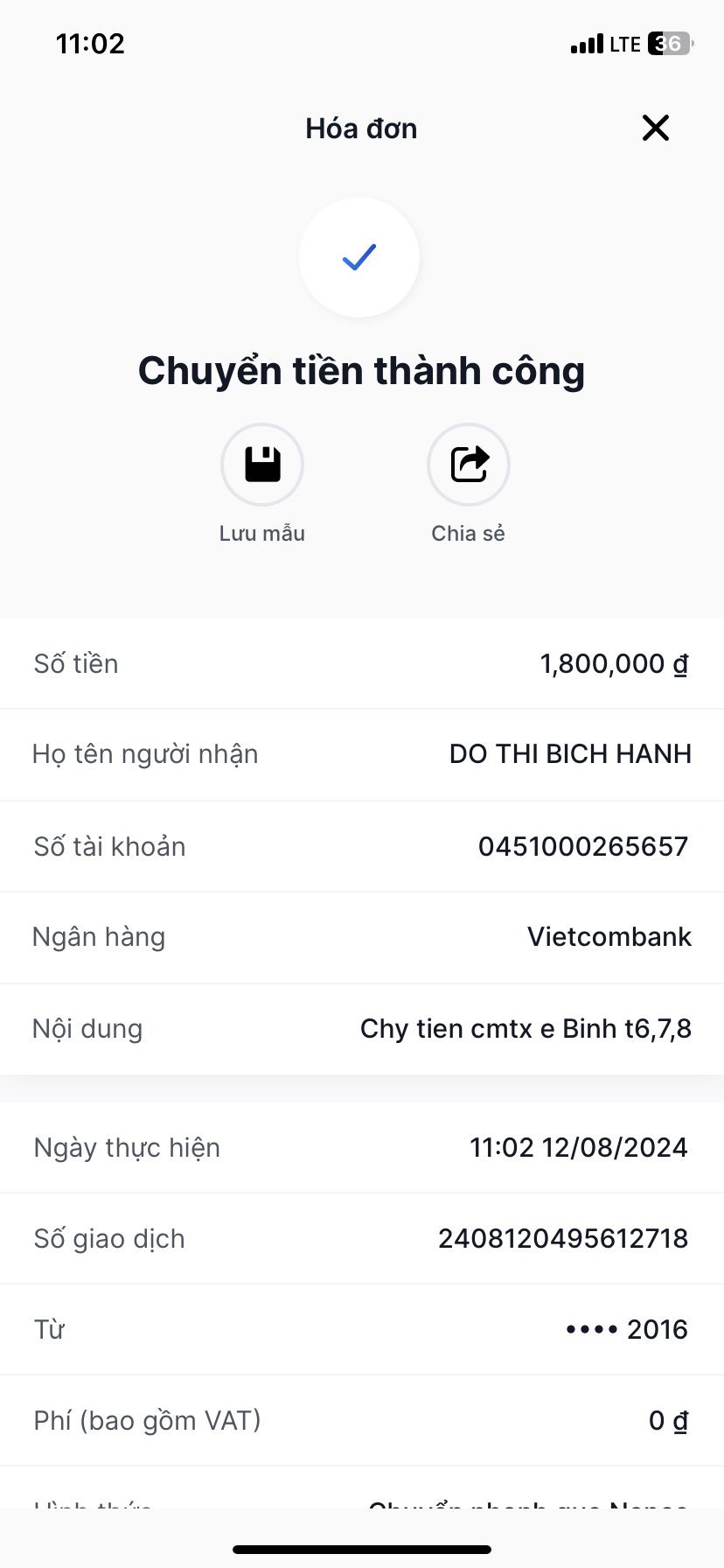 Do vậy ngày 12/8 bạn Công viết tiếp: Gửi HBL tiền tháng 6,7,8 thì sẽ được chỉnh lại là Tiền tháng 5,6,7 bạn nhé !