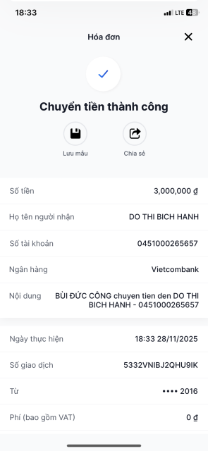 HBL đã nhận được 3tr bạn gửi CMTX T8,9,10,11,12/2025 cho hc này. HBL sẽ đến trao trong T12 này nhé !