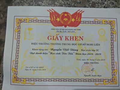 - [28/09/2019]:Năm lớp 7 vừa qua cháu Viết Dũng đạt thành tích học sinh Tiên Tiến với điểm trung bình môn cả năm là 7,7 điểm.[Trungkienbeo@gmail.com]
